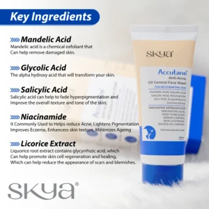 Skya Anti-Acne Oil Control Face Wash for Rejuvenating Skin | Mandelic Acid | Glycolic Acid | Salicylic Acid| Niacinamide | Zinc PCA | D-panthenol & Licorice Extract | Prevents Acne | Post Acne Scars | Controls Excess Oil | For All Skin Types Women and Men. SKYA ACCUTANE Anti-Acne Oil Control Face Wash for Rejuvenating Skin. SKYA ACCUTANE Anti-Acne Oil Control Face Wash